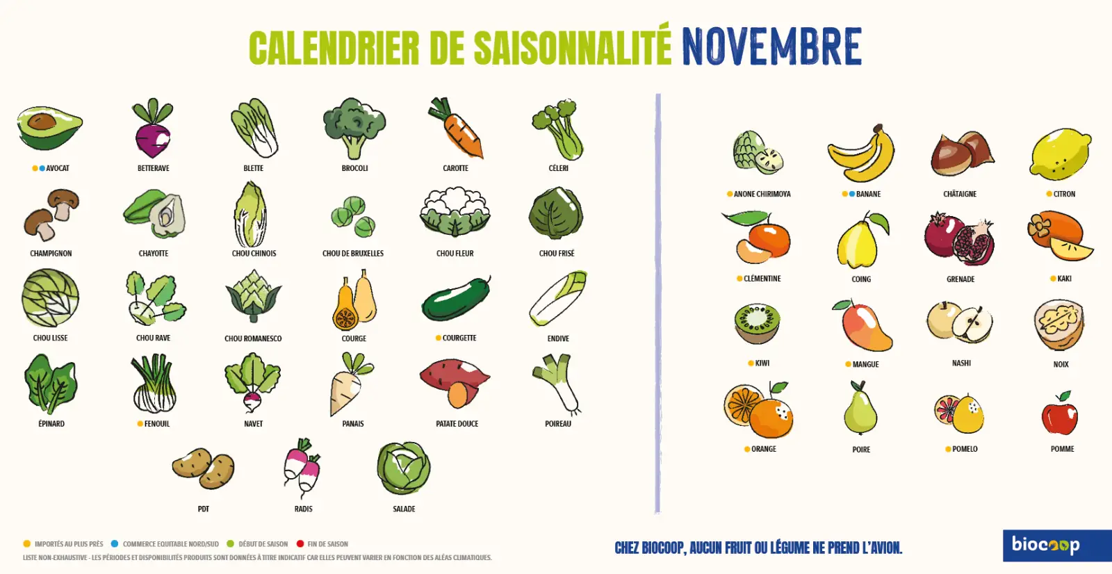 Découvrez notre calendrier de saisonnalité de Novembre 2025 !