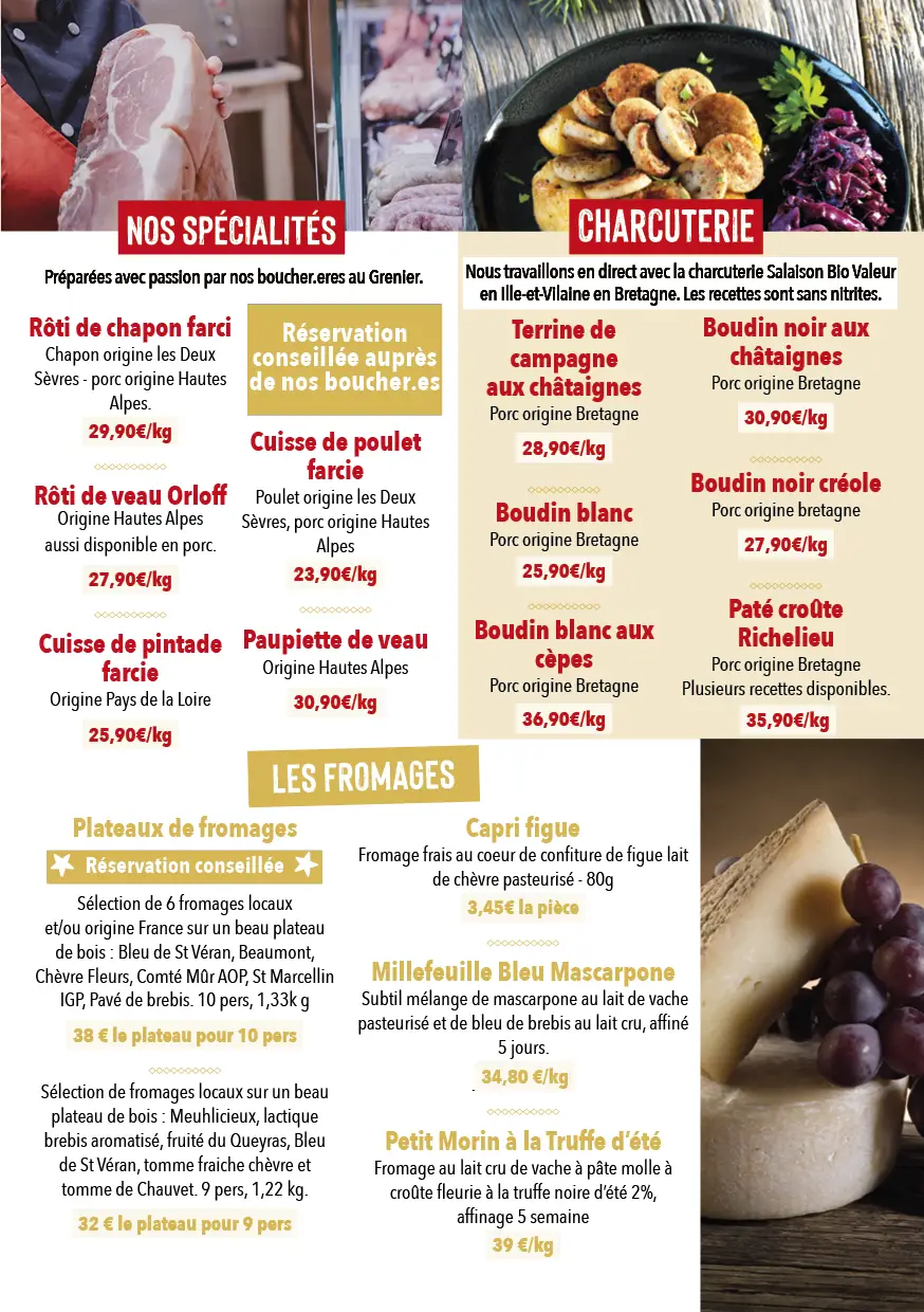 Pour le fromage, nos équipes peuvent vous préparer de délicieux plateaux fromages, n'hésitez pas à les contacter.